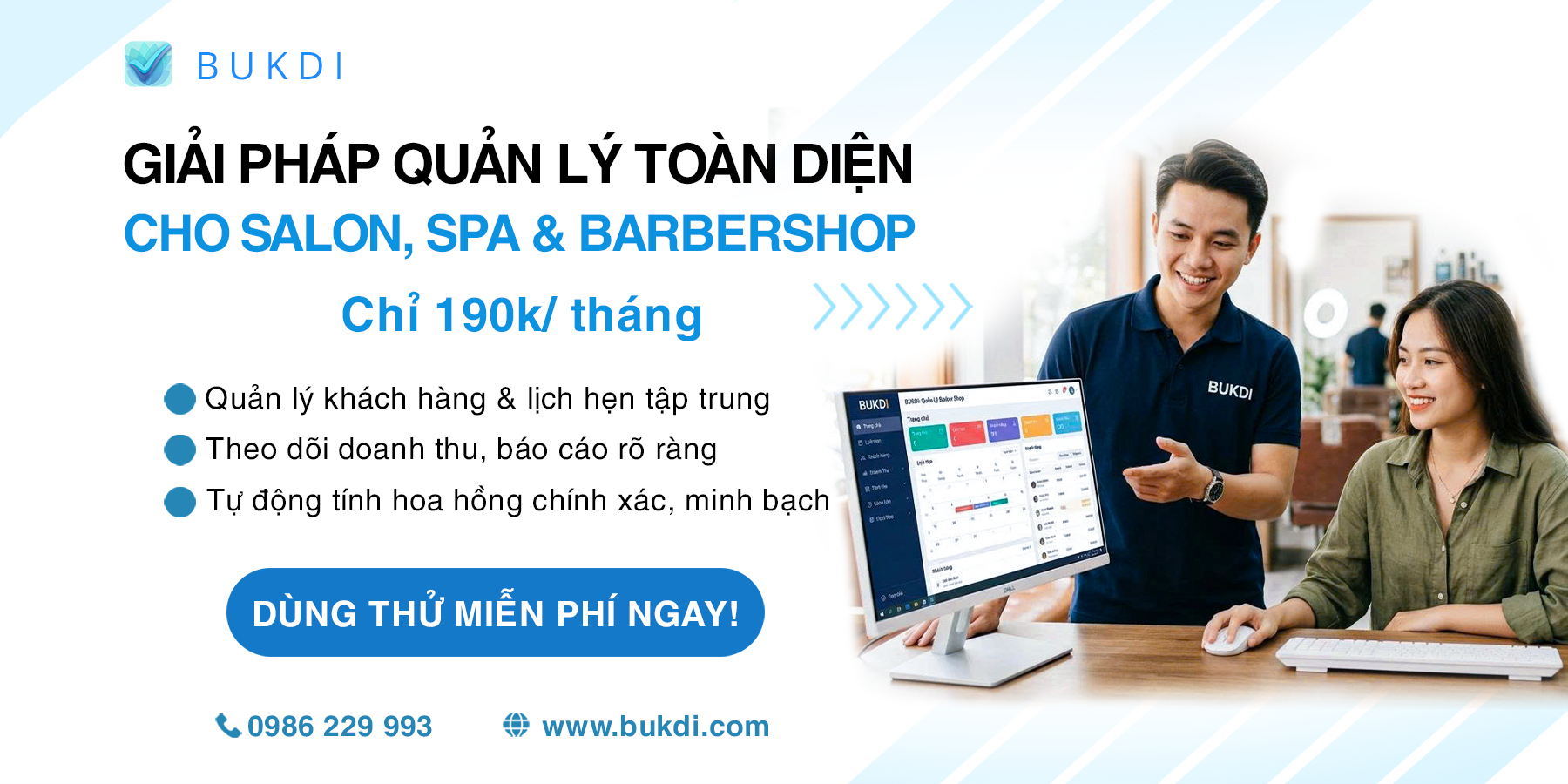 - Phù hợp cho cả Barbershop, Salon, Spa & Phòng khám